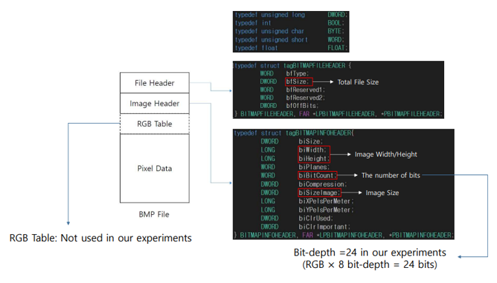 fread(&bmpInfo, sizeof(BITMAPINFOHEADER), 1, inputFile);